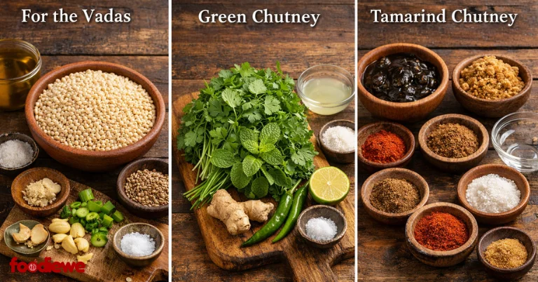 For tamarind chutney: Boil tamarind in water until mushy, add jaggery, spices, and simmer 5-7 minutes till thick. Cool, blend, and strain. This sweet-spicy dahi vada masala elevates everything. Both keep for a week refrigerated.